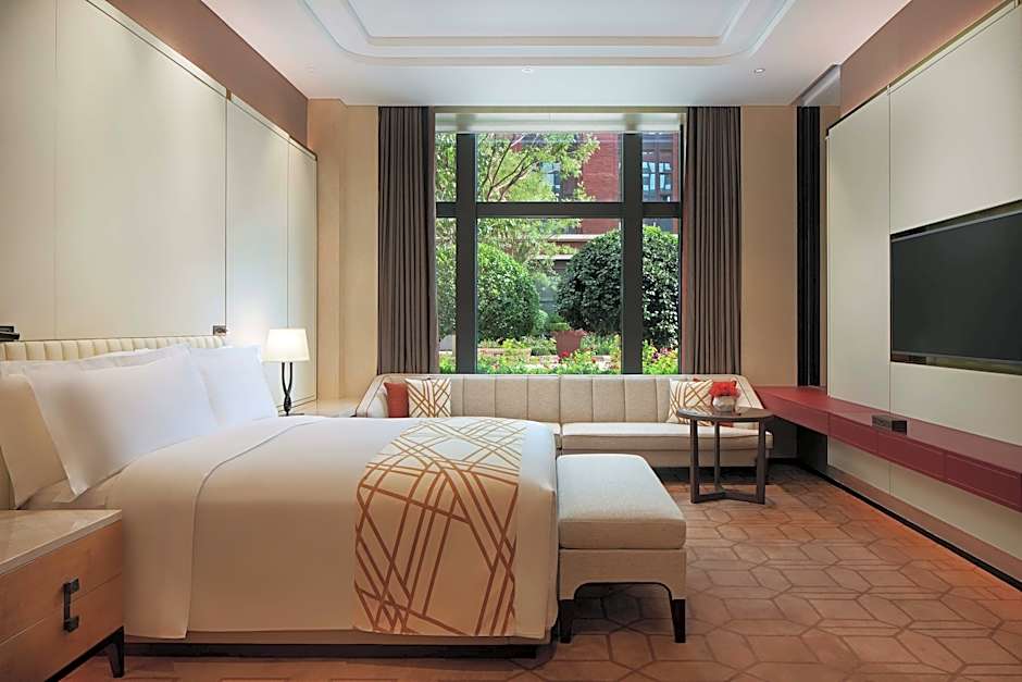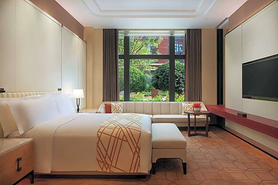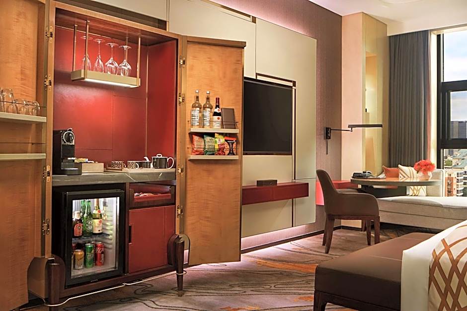 The spacious air-conditioned suite features a TV, a mini-bar, a tea and coffee maker and a seating area.